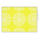 This white mandala sits on a lemon yellow background. The colours are happy and peaceful. Part of the Pras Mandala Collection.