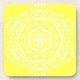 This white mandala sits on a lemon yellow background. The colours are happy and peaceful. Part of the Pympbys Mandala Collection.