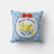 The bowl of lemons is decorated with a toile de jouy style pattern, and the border is an azulejo style simulated tile, or some might call it Chinoiserie or toile de juoy, similar to what you might see in Italy, Greece, Turkiye, or Portugal. This lovely pillow will bring a touch of sunny yellow and blue summer to your holiday decor, regardless of the weather outside.