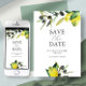 Announce your engagement with this modern save the date card. It features a mix of classic and script typography with a boarder of my original watercolor yellow lemons and olive branches on a crisp white background. The card reverses to a complimentary sage green colour. The colours can be customised to suite your wedding colour scheme. Use the template fields to personalise with your name and wedding date. Choose from a variety of quality card stocks. My favourite for this is felt white because it looks like watercolor paper. A rustic yet elegant design for weddings and engagement announcements. To see the matching wedding stationery suite visit www.zazzle.com/dotellabelle