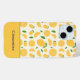 A phone case with a slice, half and full lemon pattern. A customisable first name or text of your choice is available at the bottom. A fresh gift for a friend who loves citrus.