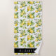 Lemon Pattern, Lemon Flowers, Leaves, Your Name Beach Towel