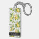 Lemon Pattern, Lemon Flowers, Leaves, Your Name Key Ring
