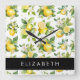 Lemon Pattern, Lemon Flowers, Leaves, Your Name Square Wall Clock