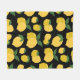Lemon Pattern Retro Fruit Yellow On Black Fleece Blanket