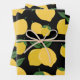 Lemon Pattern Retro Fruit Yellow On Black Wrapping Paper Sheet