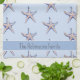 Beautiful custom name kitchen towel with a colourful watercolor Starfish pattern. Kitchen towel with personalised name in seamless delicate Starfish.