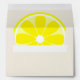 An off white envelope featuring an illustration of a lemon slice on inside.