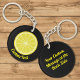 Round slice of lemon icon. Custom background colour. Custom text on both sides.