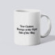 Great product, good delivery time, and an awesome idea for a gift! It was even better than I could have imagined, the customisation is incredible. The colour is perfect, it's dishwashable and microwaveable, the text print on the mug looks exactly like I wanted it to look and best of all, it's a large sized mug that you can drink plenty of coffee or whatever you want! I gifted this to my father and he loves it. He drinks coffee with that mug everyday :) I recommend.