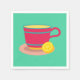 Cute teacup illustration with lemon tea. Tea lovers theme - tea makes everything better theme. Cute retro tea design on a teal background.