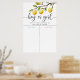 A fun poster to have at your gender reveal party! Illustration of watercolor lemons on a tree branch with a text that says "boy or girl" at the top asking guests to cast their vote on what they think the baby's gender is going to be. Guests can vote for team boy or team girl. A fun game activity to do at your party.
