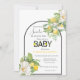 lemon arch theme little sweetie baby shower invitation card with a garden fruit image on a tree branch. Perfect for a summer girl's shower.