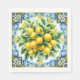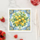 Party paper napkins are shown in the white luncheon size with an art print of a mediterranean lemon tile.