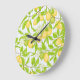 Lemon Tree Branch: Striped Seamless Pattern Large Clock