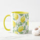 A fruiting lemon tree. Lemon tree pattern. Lemon tree with green leaves, yellow lemons and white flowers.