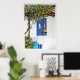 From an original painting in acrylics, by Yvonne Ayoub, of a lemon tree and blue door of a typical island house in Skiathos, Greece