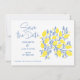 Announce your special day with a burst of freshness using our Lemon Vines Save the Date Card. This delightful card features vibrant blue and yellow lemon vines, adding a Mediterranean-inspired touch to your wedding. Let your guests know about your upcoming celebration in a bright and invigorating way.