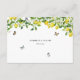 Summery, simple and elegant, this lemon themed wedding details enclosure card features brightly coloured branches of lemon trees, white flowers with summer butterflies around.