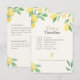 Elegant wedding details card featuring a watercolor lemon and greenery design with a clear day‑of timeline and dress code on the front. The reverse side includes accommodation information and a QR code guests can scan to access travel details, RSVP, and updates on your wedding website, making it a practical companion to your citrus wedding invitation suite.