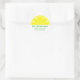 A sticker featuring an illustration of a lemon wedge on top half portion. Personalise the green text on bottom half with your name and address. Look for matching items in the "food" category of Jill's Paperie.