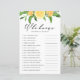 Who knows the mum best? Add this fun and playful baby shower game card to your event. It features watercolor lemon, oranges, greenery and baby's breath. Personalise this citrus baby shower game by adding your own questions. This lemon baby shower game is perfect for summer baby showers.