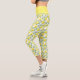 White capri leggings with a fress zesty yellow and green lemon citrus fruit botanical pattern design.