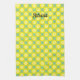 Lemon Yellow Polka Dots Sage Green Custom Name Tea Towel