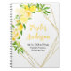 This fun and whimsical notebook features watercolor citrus lemons and foliage on a gold geometric frame. The text combines handwritten script and serif fonts for a stylish and modern look. It can be personalised with your baby's birth stats, such as name, size, date and time of birth, or if you would like to give it as a shower gift you are able to edit and remove text.