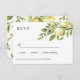 Designed to coordinate with our Lemons and Leaves watercolor floral wedding collection, this elegant botanical RSVP card features a sophisticated watercolor branch of yellow lemons and leaves on the upper right side of the card with your desired response and date.