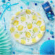 Lemons and leaves are painted with watercolor then a pattern is made in Illustrator.