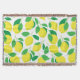 Tropical pattern with lemons and leaves drawn in Illustrator.