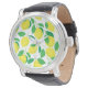 Tropical pattern with lemons and leaves drawn in Illustrator.