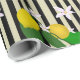 Fresh citrus design from an digital illustration. Yellow lemons and lemon blossoms against a black and beige striped background. Fruit right off the tree! Step up your gift wrapping game with unique gift wrap for the lemon lover in your life! Perfect for tea party hostess gift, summer birthdays, or garden party gifts.