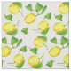 A soft and pretty citrus fruit fabric decorated with lemons in bright shades of yellow and green painted in watercolor.