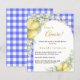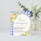Celebrate your upcoming bundle of joy with this elegant lemon-themed bridal shower invitation. Featuring a blue italian, Amalfi style and white gingham background, delicate watercolor lemons, fresh greenery and a pink bow, this design creates a warm and inviting atmosphere perfect for a summer or italian, citrus-inspired bridal shower. Text: That's Amore!