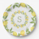 Lemons Greenery Monogram Elegant Paper Plate