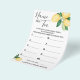 Lemons Citrus Name that Tea Bridal Shower Game. Change text to the design. For additional changes (change number of teas and any other text, font colour, font style), click on personalise, scroll down and click on the link "Edit using Design Tool". ** Please see the full collection for matching designs available** HOW TO PLAY: Have ten different type of tea, guests will write down their guess of each tea flavour by smelling and looking only, the person with the most correct answers wins!