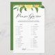What's in your purse? Add this fun and festive Purse game card to your event. It features watercolor garland of lemons, oranges and greenery with a whimsical script. Personalise by adding texts on the back of the card. This Purse game is perfect for summer bridal shower games and wedding shower games.
