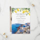 This elegant wedding save the date invitation featuring watercolor lemons and Santorini Greece scene can be personalised with your information in chic typography and all your special photo on the reverse. Designed by Thisisnotme©