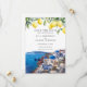This elegant wedding save the date invitation featuring watercolor lemons and Santorini Greece scene can be personalized with your information in chic typography. Designed by Thisisnotme©