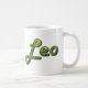 The word Leo lined in silver and filled with the star sign's gemstone, peridot. Great birthday gift for people born in July or August.