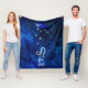 Leo Zodiac Constellation Dark Blue Galaxy Monogram Fleece Blanket