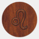 Leo Zodiac Sign in Mahogany wood style Classic Round Sticker