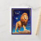 Postcard in the zodiac sign Leo, featuring a powerful lion standing proudly on a rock beneath a star-filled night sky. The lion’s flowing mane radiates strength and nobility, echoing Leo’s traits of confidence, leadership, and courage.