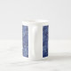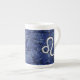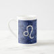 Leo Zodiac Symbol on Navy Blue Digital Camo Bone China Mug