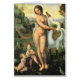 Leda and the Swan (1505-1510) by artist Leonardo da Vinci (1452-1519) is a vintage Renaissance Era fine art mythological portrait painting. A beautiful woman is standing next to a large, white bird, a swan and two young children are by her feet.