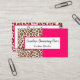 Leopard and hot pink business card with a template for you to easily use all of your own information