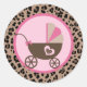 Leopard and Pink Carriage Baby Shower Classic Round Sticker