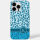Leopard animal print aqua blue monogram Case-Mate iPhone case